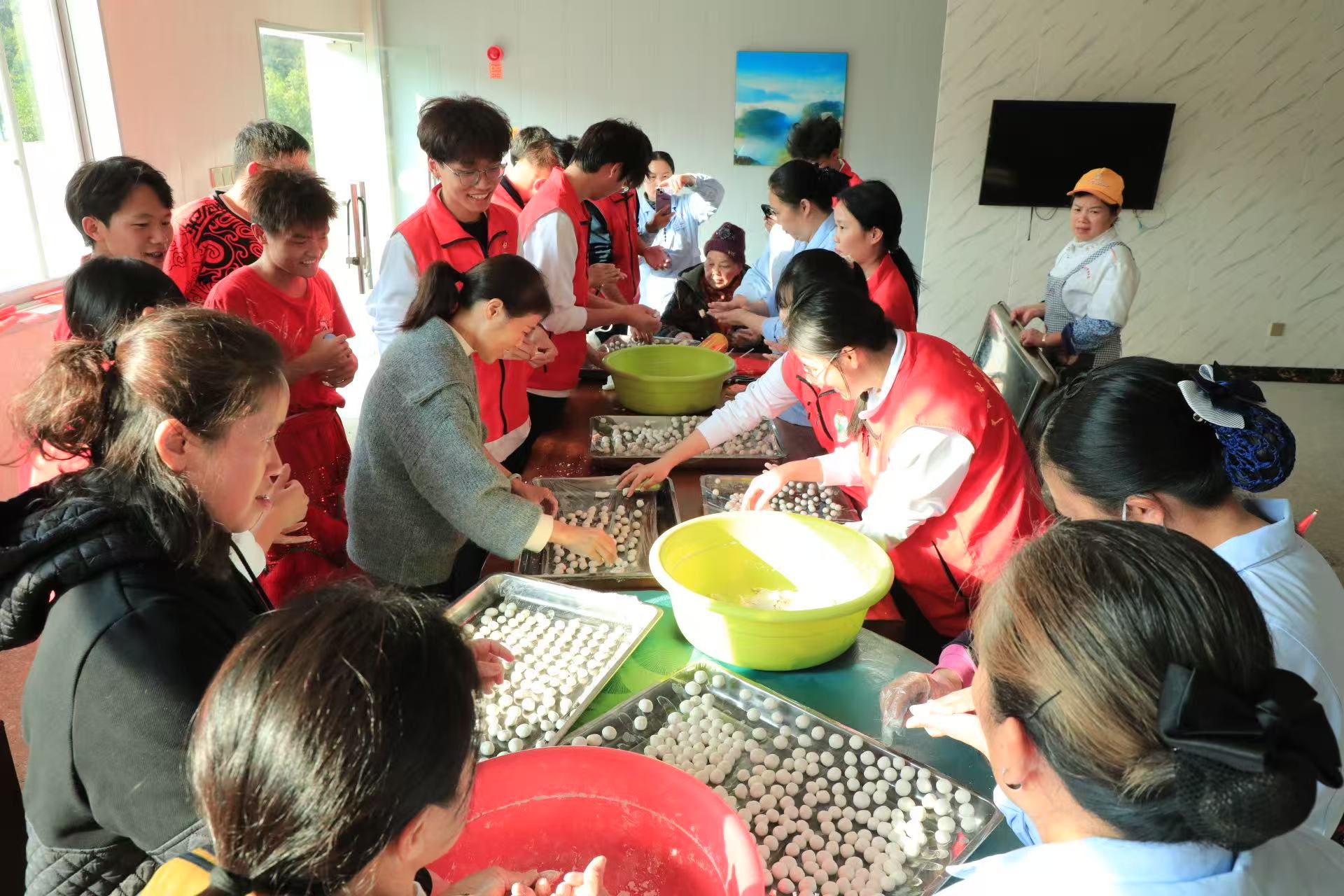 冬至大如年,人间小团圆!志愿者提前和好面、备齐馅料与餐盘,与东江养老院老人围坐包汤圆。老人们手把手教造型,志愿者默契配合,饱满的汤圆很快摆满餐盘,欢声笑语驱散了冬日寒意,团圆的温情在指尖与餐桌间悄然蔓延。