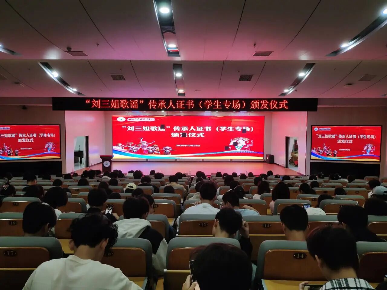 薪火相传!我校举行“刘三姐歌谣”传承人考核暨初级证书颁发仪式,41名学子喜获认证